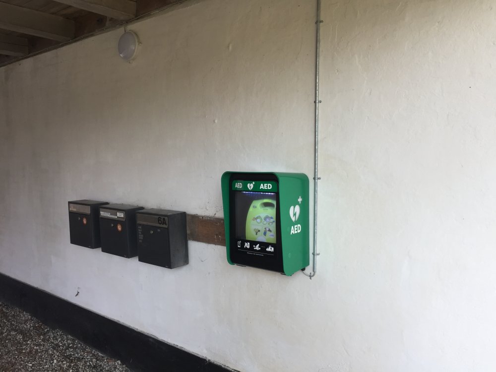For at skabe større tryghed i landsbyen og øge chancen for at overleve et hjertestop, har vi arbejdet på at få en hjertestarter til byen. I april 2019 deltog vi med 15 ruter i Hjerteforeningens landsindsamling og blev belønnet med en hjertestarter..