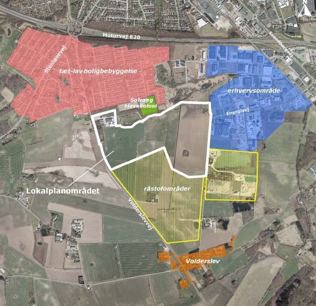 Kommuneplanen indeholder også intentioner og bestemmelser for Volderslev, der fortæller om områdets anvendelse, bebyggelsesprocent, højde på byggeri osv. Rammebestemmelserne er ikke i sig selv bindende for den enkelte grundejer, men giver